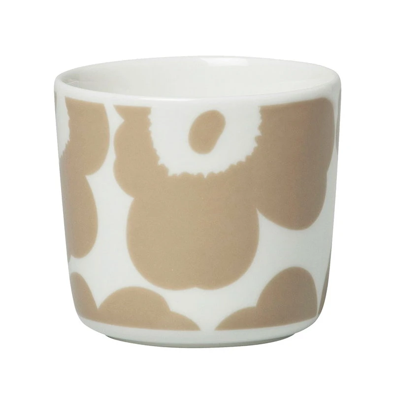 Marimekko’s Unikko coffee cup features Maija Isola’s iconic floral pattern from 1964 in white and beige. Sold in a set of 2, the ceramic, handleless cups are part of Sami Ruotsalainen’s clean-lined Oiva tableware collection that suits both casual and festive settings.